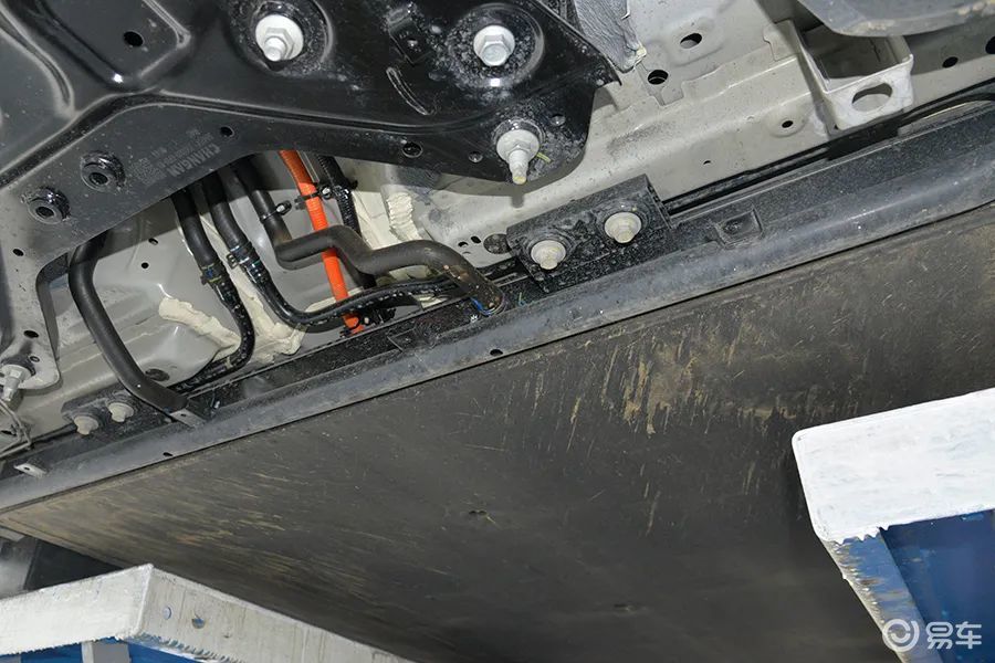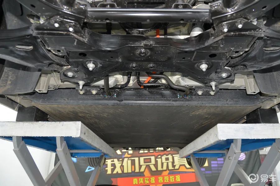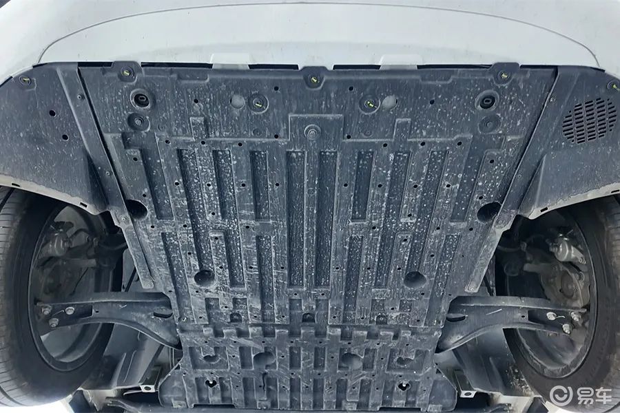 这辆车的底盘平整度还可以,从前到后都有完整的护板。