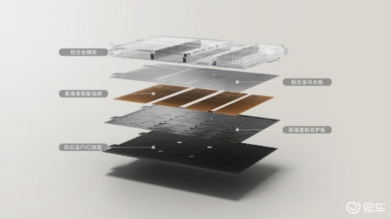 同时,通过5倍新国标底部撞击的优异表现,归功于电池底部的5层复合装甲结构,包含铝合金横梁、铝合金冷水板、高强度吸能泡棉、高强度钢底护板和防石击PVC涂层,多层复合结构可抵御路面碎石、托底撞击与尖锐物体穿刺,确保电池包在复杂路况下零变形。