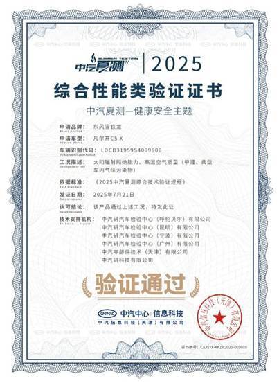 凡尔赛C5,X荣膺中汽夏测健康与操控双安全权威验证证书