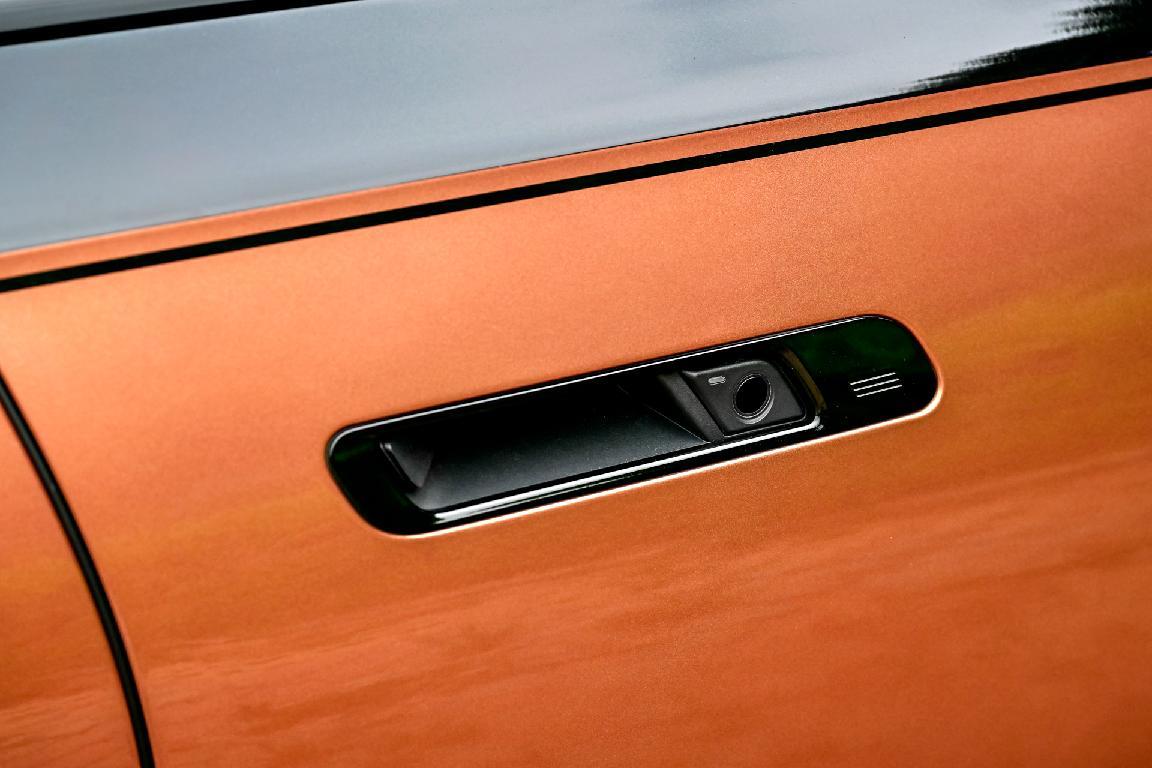 携带车钥匙或者绑定手机,走进i7 M70L距离1.5米处时即可触发车辆解锁并打开外后视镜,同时它会用点亮鼻孔、日间行车灯以及在地面上照射出光毯的方式与你产生互动,好似某种未来的人工智能,在扮演宠物的角色。说实话,我对豪华品牌旗舰们这种争宠的常规方式早已司空见惯,就看谁的礼数幅度大、诚意到位,而这一次,当车门自动徐徐开启时,还真是被震撼到了,相比于神奇的“隔空取物”似乎要更高级一些,至少不会因表演失败而感到尴尬。