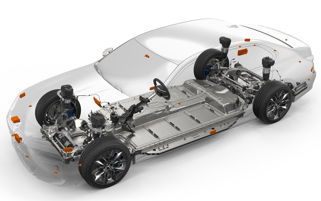 BMWi7 xDrive60L搭载BMW第五代eDrive三合一电驱系统,具有小体积高功率密度特点,并使用了无稀土材料的自励同步电机。其中,前置电机功率为190kW,扭矩为365Nm,后置电机功率为355kW。总输出功率为545kW,总输出扭矩为1100Nm,从静止加速至100km/h的时间仅为3.7秒,最高时速达到了250km/h。