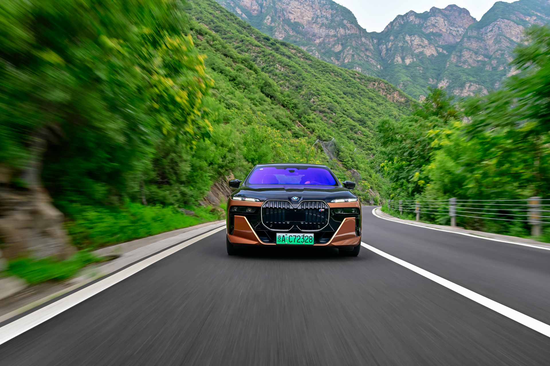 对于驾驶,作为肩负旗舰重任的i7 M70L来说,做到表里如一绝非易事。调整至i7 M70L专属的赛道模式,虽然手握方向盘的我已将紧张感驱离的无影无踪,但是当身处于多弯的山路之中,并面对相对自己距离1m远的车头时,仍然心存余悸。因为我始终坚信无论拥有多奢华的内饰,对于一辆车来说都是附加品,在享受驾驶乐趣的过程中,手中的方向盘、脚下的刹车和油门才是一辆车的精髓所在。好在,自己并没有过分低估这辆纯电动车,勇敢地踩下油门,大角度转动方向盘,逼迫自己和这辆车去探索极限。i7 M70L良好的悬架调校令近2.8吨的车身在总功率达到545kW的电动机推动下显得非常灵活,遇到转角较大的弯道或者高速并线,极其平稳且从容,以至于所经过的每一处风景,都能够留下美好的回忆。