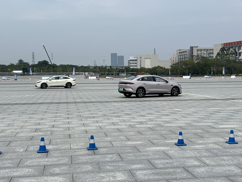 近日,汽车与世界编辑一行在广州大学城场地试驾了比亚迪秦L EV,场地设置非常全面,有连续的减速带,有各种紧急刹车、绕S弯以及场地8字,类似麋鹿测试等的一些项目,全面检测比亚迪秦L EV 云辇版的各项性能。但比亚迪秦L EV 云辇版配备云辇-C智能阻尼车身控制系统和TBC高速爆胎稳行系统。对这些测试,全部轻松拿下。