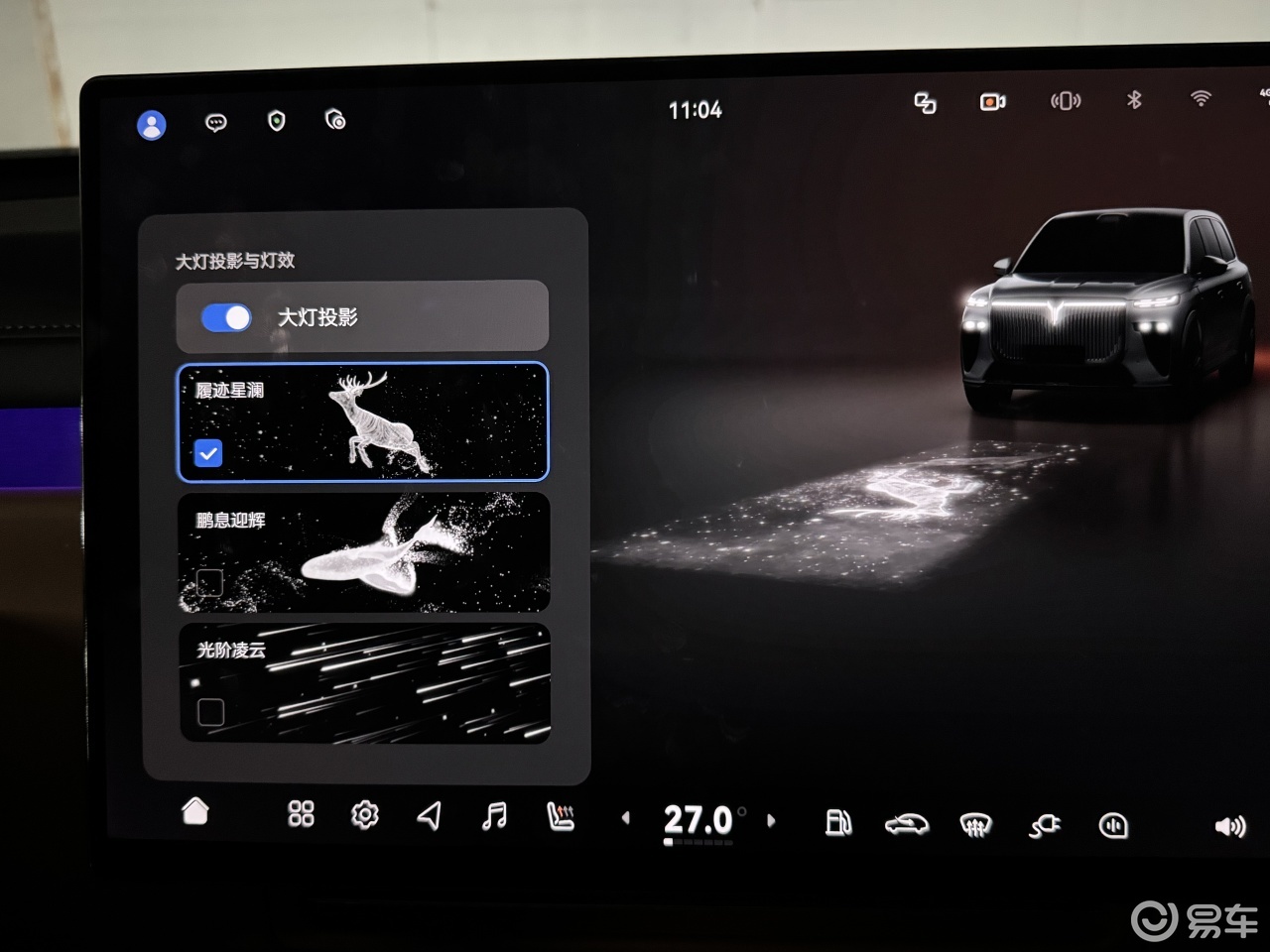 最让我惊喜的是它的“智慧光影系统”。太有仪式感了,你先想象一下,“仪式感”都应该有什么?为了真实的体验一下,我们专门把车开到了地下停车场,这里光线稍暗,我可以更好地“品味”一下泰山的“美”。