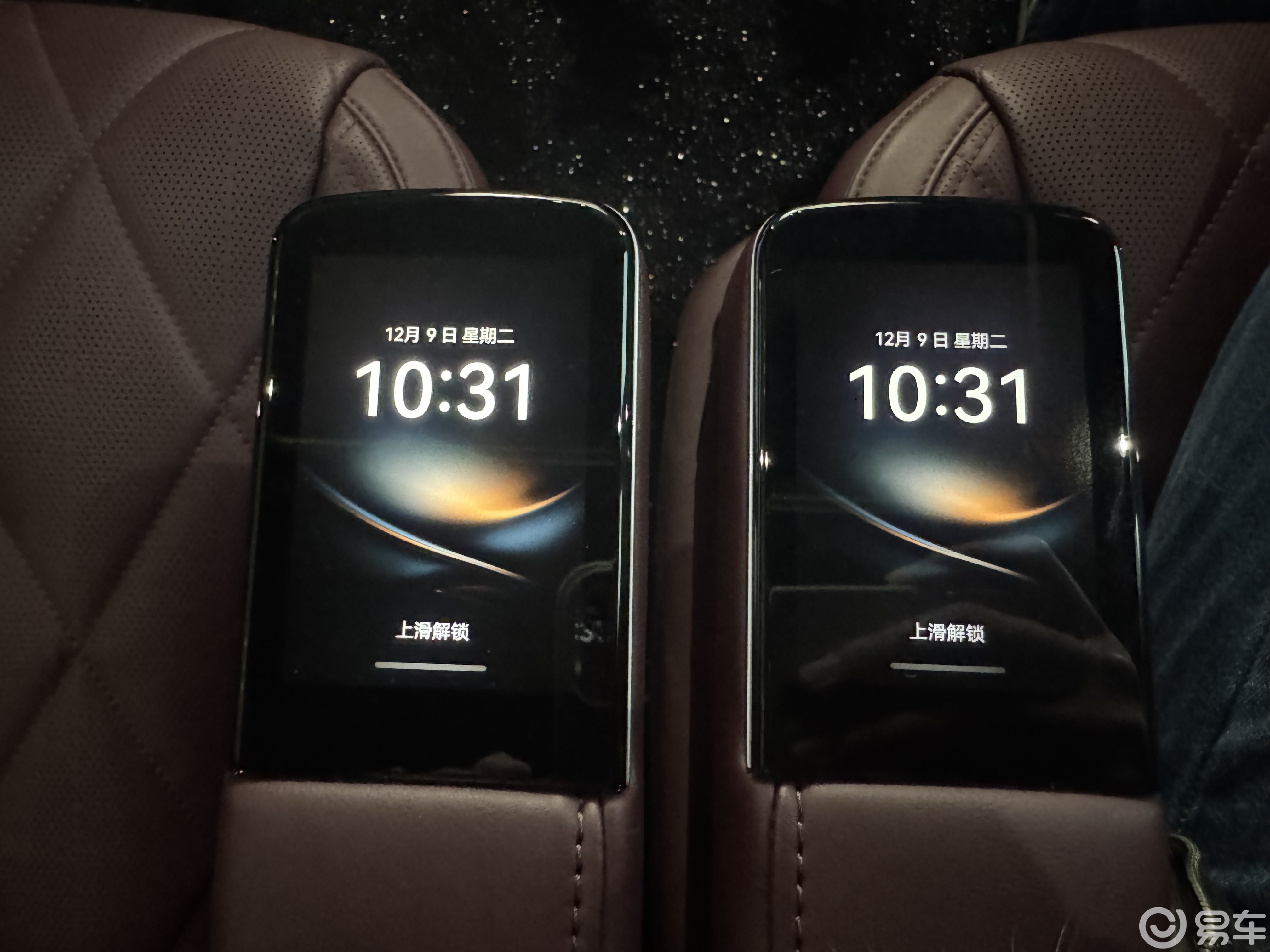 二排双侧都有一块3.5英寸纤薄扶手屏,融入Local Dimming智能调光与独立背光分区,画面细腻且柔和不刺眼。集成座椅、空调、娱乐等高频功能,支持触控与语音,亲自试过很好用,反映不迟滞。