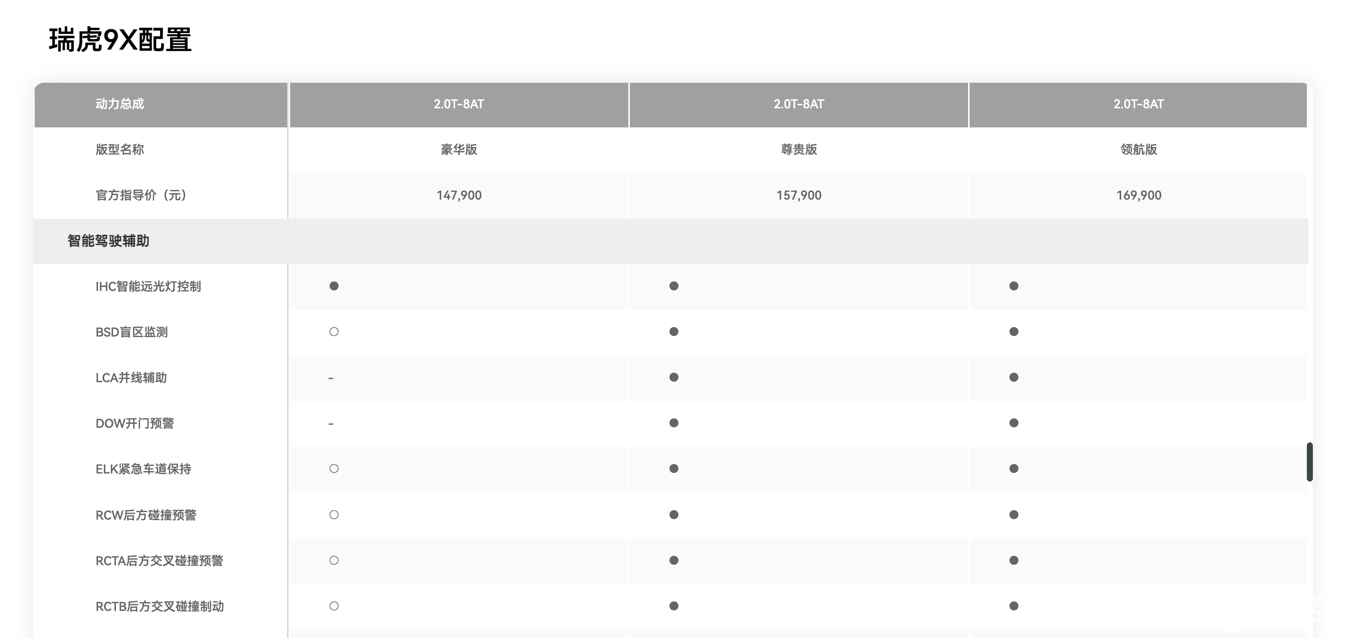 其实当下我们差不多以白菜价装备的各种智能辅助驾驶系统,是个更好的解决方案。比如瑞虎9X高配上搭载的奇瑞自家的猎鹰500辅助驾驶系统,我们即便拿掉高速NOA、城市领航和智慧泊车,仅仅是看智能避让、开门预警、碰撞预警这些功能,放在20年前,都得是合资车的顶配或者豪华品牌才能有的配置。现在,15万级的瑞虎9X就能有,而且是在纯燃油车上做到的。