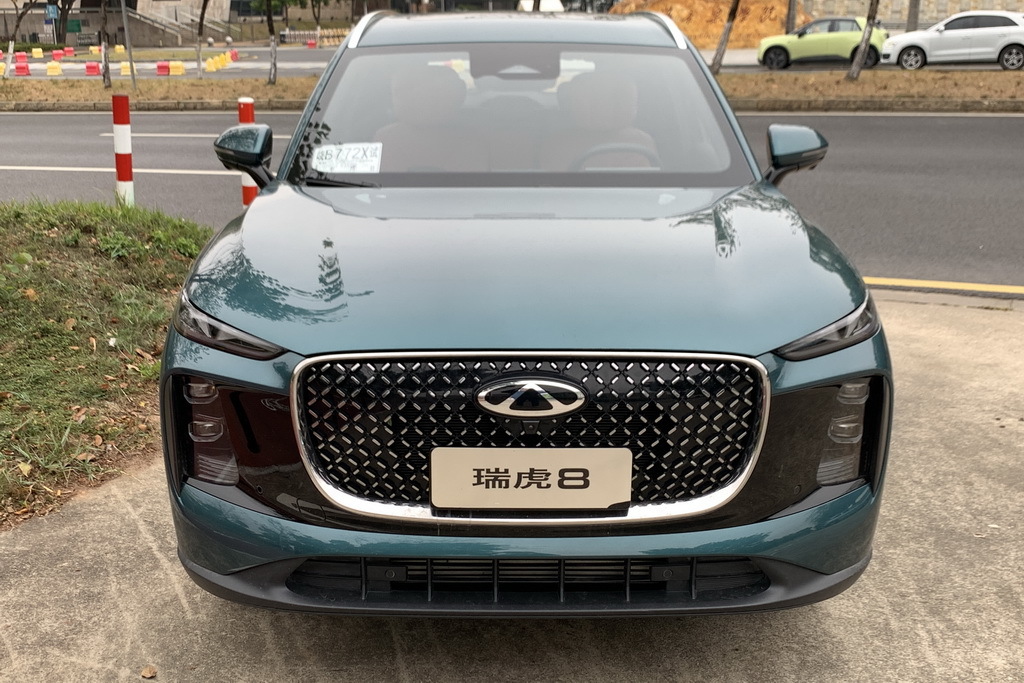 大家都知道,这一次瑞虎8是推出了虎款、豹款两种造型风格可选,同时对应的座舱布局也有明显差异。这次我们试驾的第五代瑞虎8豹款在外观造型上其实更像是一台新能源产品,你看车头这个圆润的中网造型,搭配上分体式灯组以及包围两侧的黑色饰板点缀,真的是电感十足。