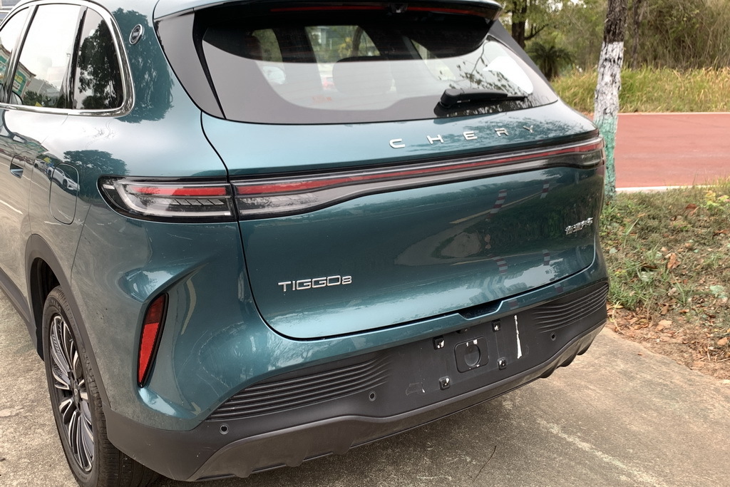 第五代瑞虎8豹款尾部采用了时下流行的贯穿式尾灯组设计,立体化的造型和两侧的C型特征线组合出更加运动的感觉,并且豹款在包围这一块还配备有类似扩散器的造型,虽然不知道能起到多少实际作用,但至少在情绪价值这一块,绝对是足够的。