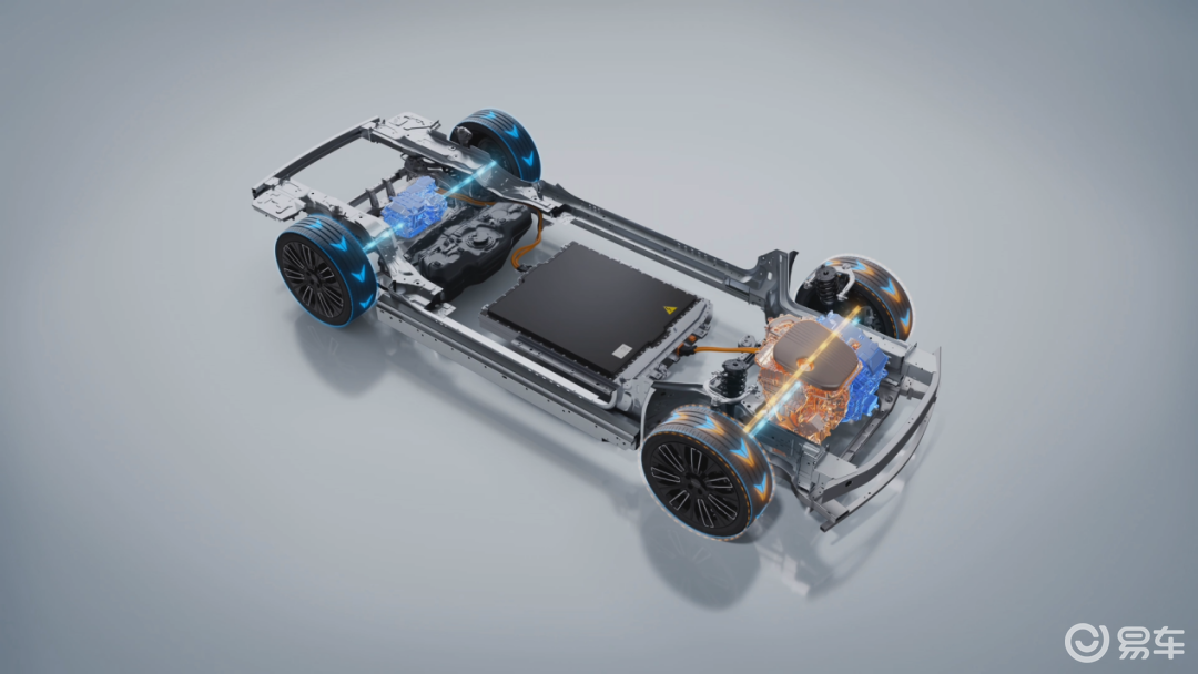 搭载的这套EM-P超级混动系统,由1.5T Evo全新电混专用引擎、3DHT Evo电驱变速器和前后双电机组成。