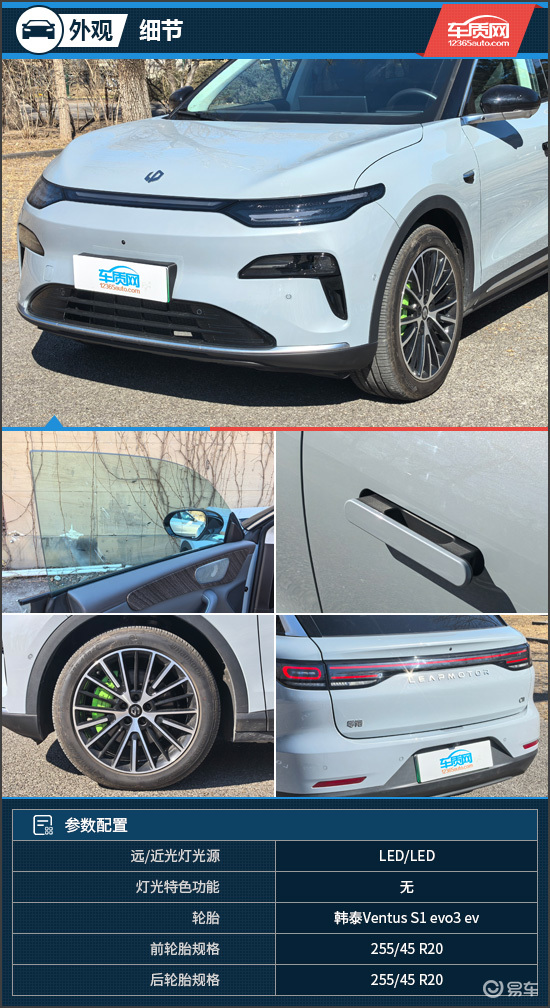 细节方面,大灯采用分体式设计,三段式贯穿日行灯点亮后极具辨识度,呈现科技之美。御风无框车门和隐藏式电动门把手的搭配,令上下车时的仪式感拉满。全新的20英寸掠风轮毂造型运动,与高性能绿刹车卡钳共同展现出新潮格调。前/后轮胎规格均为255/45 R20,来自韩泰Ventus S1 evo3 ev,是一款专为新能源车设计的高性能轮胎,在保证抓地力的同时显著降低路面噪音。