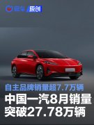 易车讯 近日,中国一汽发布2025年8月销量快报。8月,中国一汽整车销量突破27.78万辆,同比增长3.7%。其中,自主品牌销量突破7.7万辆,同比增长15.3%;自主新能源销量突破3.48万辆,同比增长66.9%。...