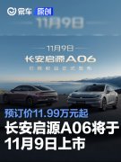 易车讯 10月29日,长安启源官方宣布,长安启源A06将于11月9日正式上市。新车为长安SDA平台首款轿车,于9月28日开启预订,先享预订价区间11.99-15.99万元。 外观方面,新车由世界级设计大师克劳斯...