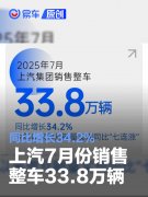 易车讯 8月3日,上汽集团公布最新销量数据。2025年7月,上汽集团销售整车33.8万辆,同比增长34.2%。1-7月累计实现整车批售239万辆,同比增长15%,终端零售交付达到256.7万辆。 具体来看,自主品牌...
